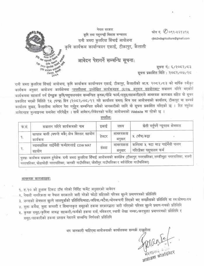 आवेदन पेश गर्ने सम्बन्धी सूचना ।