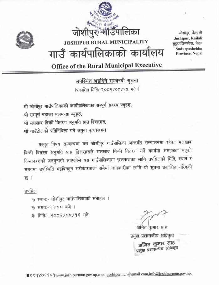 प्रमुख प्रशासकीय अधिकृत (श्री अमित कुमार साह) : ९८५८४७६९००