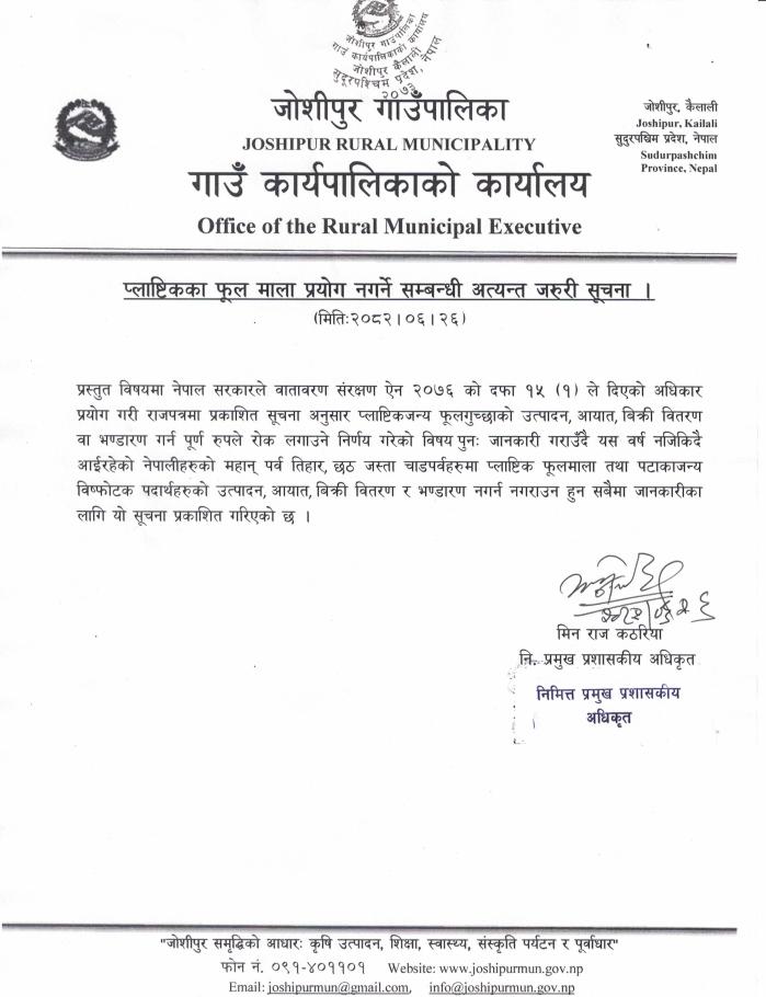 अध्यक्ष (श्री चित्र बहादुर चाैधरी) : ९८४८४५९६१८