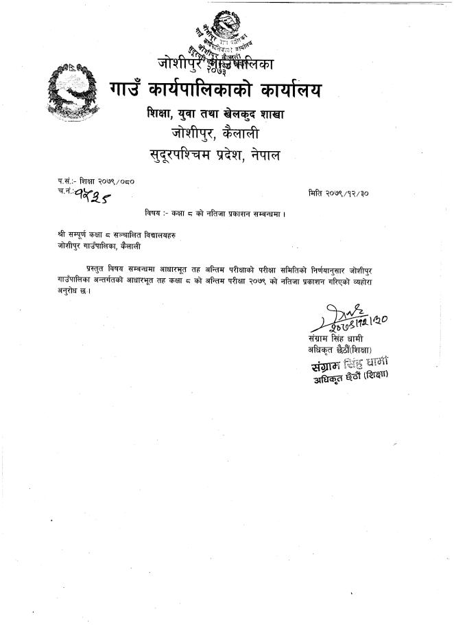 कक्षा ८ को नतिजा प्रकाशन सम्बन्धमा ।