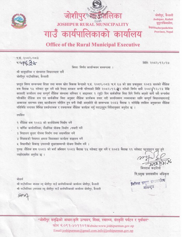 अध्यक्ष (श्री चित्र बहादुर चाैधरी) : ९८४८४५९६१८