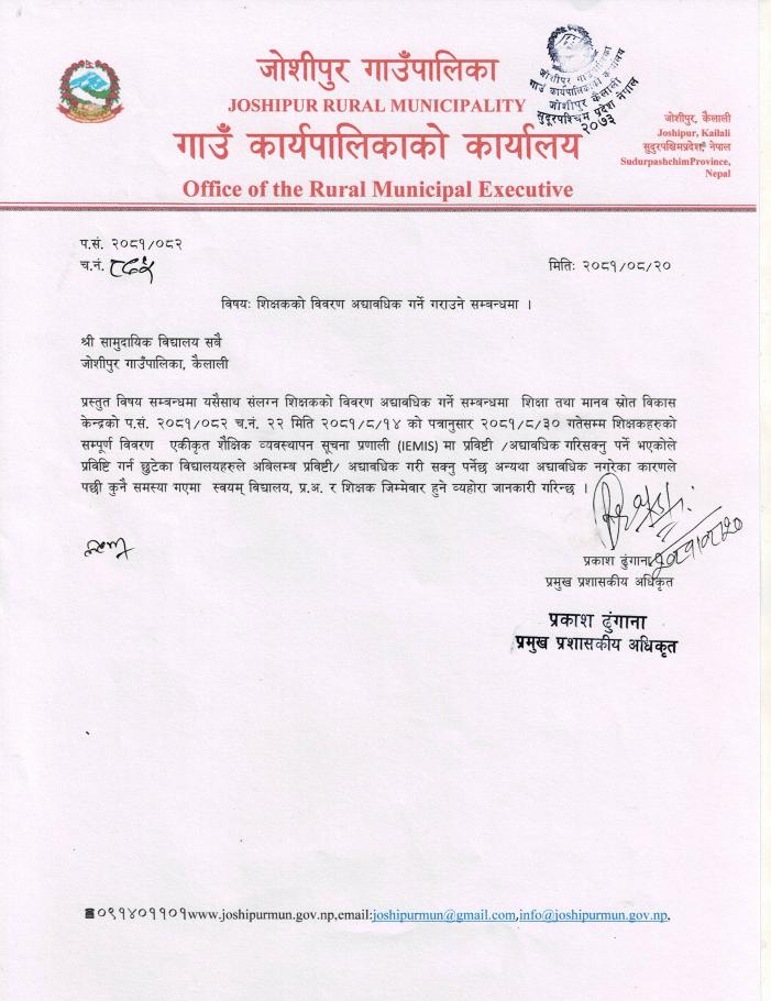 अध्यक्ष (श्री चित्र बहादुर चाैधरी) : ९८४८४५९६१८