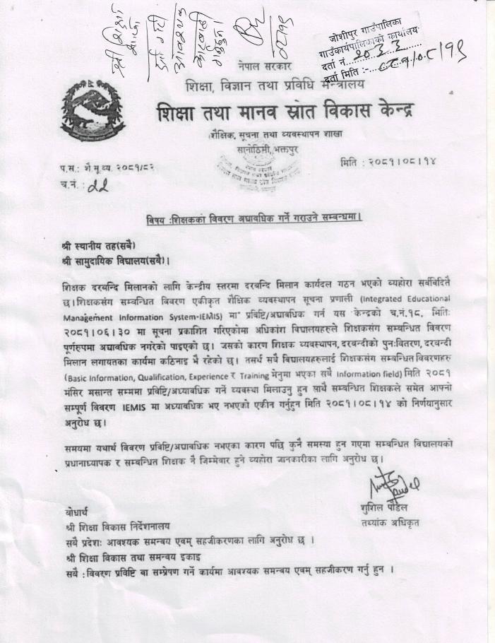 कार्यालयकाे फाेन नम्बर : ०९१ -४०११०१