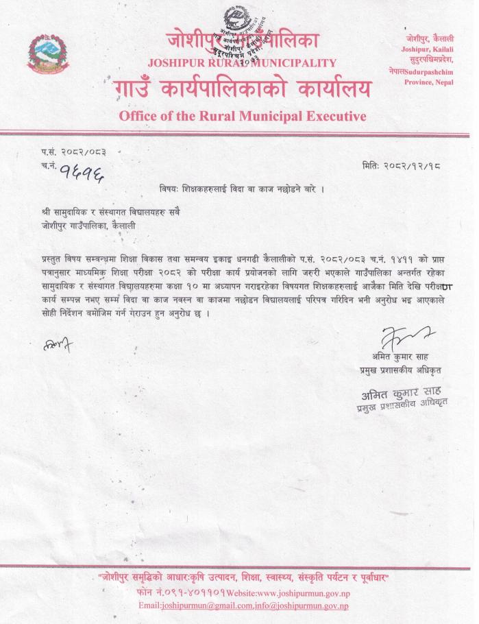 शिक्षकहरुलाई बिदा वा काज नछोड्ने बारे । (श्री सामुदायिक र संस्थागत विद्यालयहरु सबै)