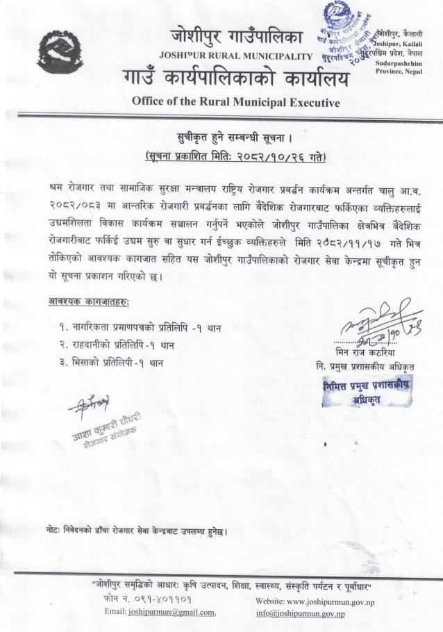 सुचीकृत हुने सम्बन्धी सूचना